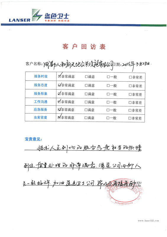 • 藍色衛士與深圳潔鵬除蟲建立互動關系2015.06.18